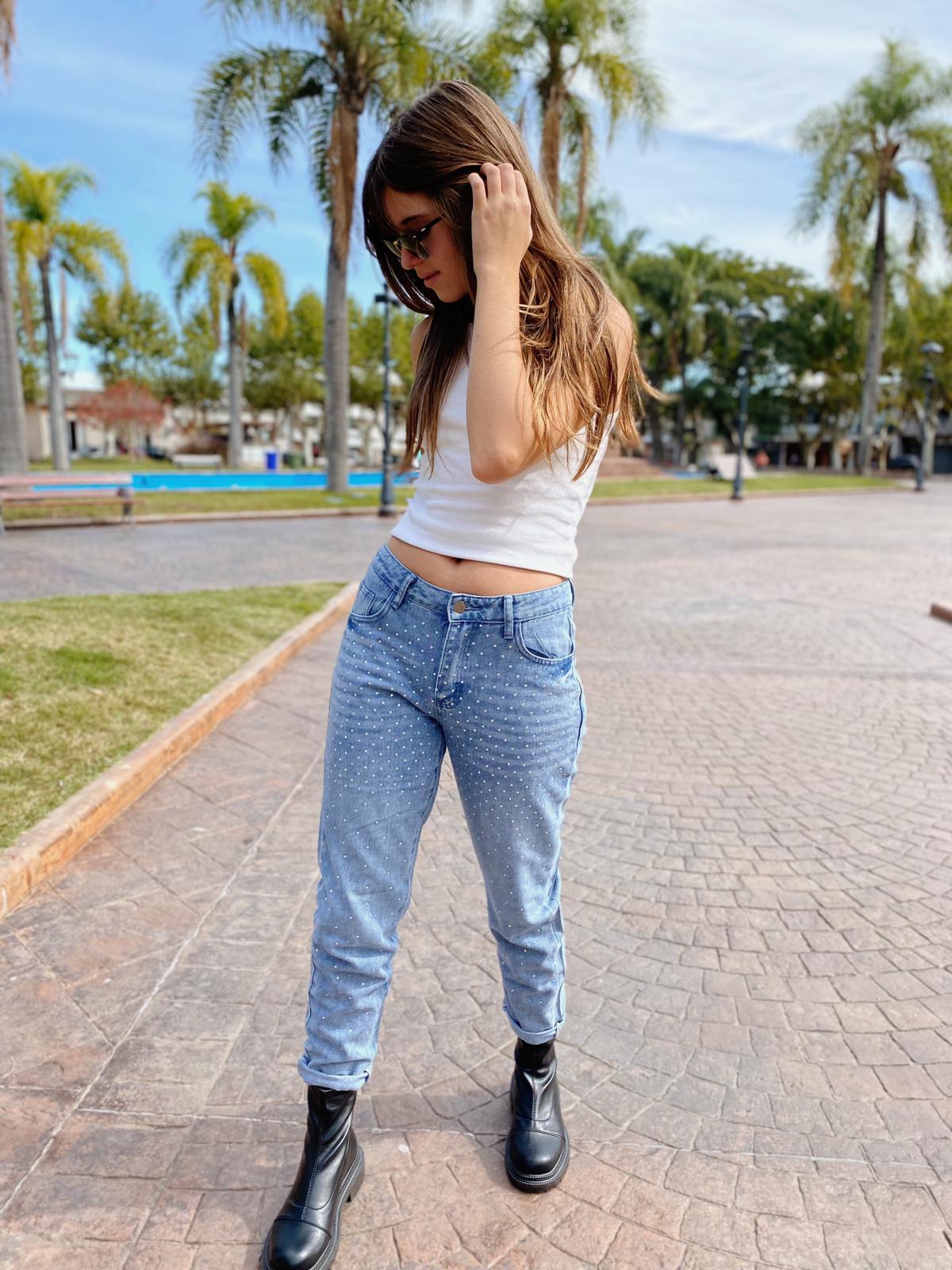 Jean estilo mom con brillitos, divino!
